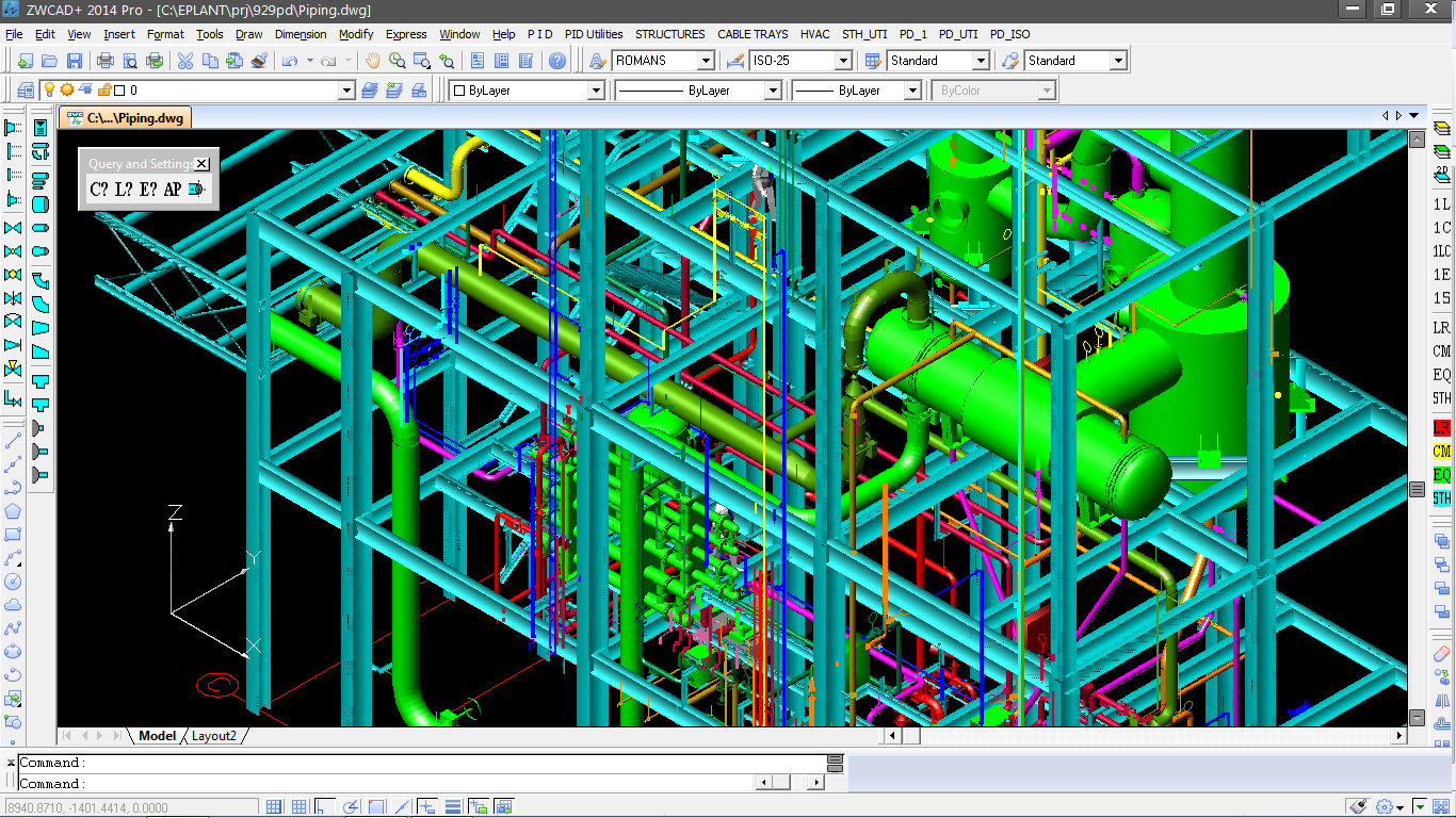 EPLANT-Piping is a computer aided design system for 3D Equipment and Piping layout, Material Management. EPLANT-Piping is built as a graphic application running on both AutoCAD® and ZWCAD+, integrated with a data base material management system.